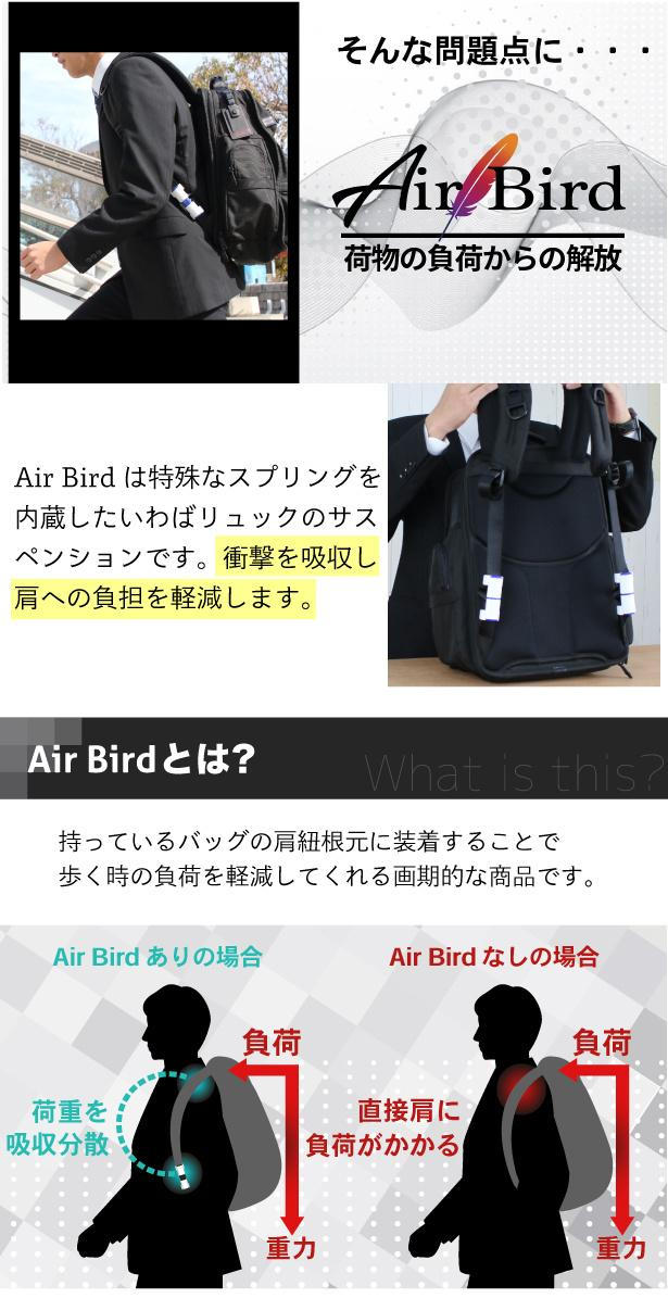 荷物の重さを吸収し肩への負荷を軽減!手持ちのリュックに装着可能!Air Bird