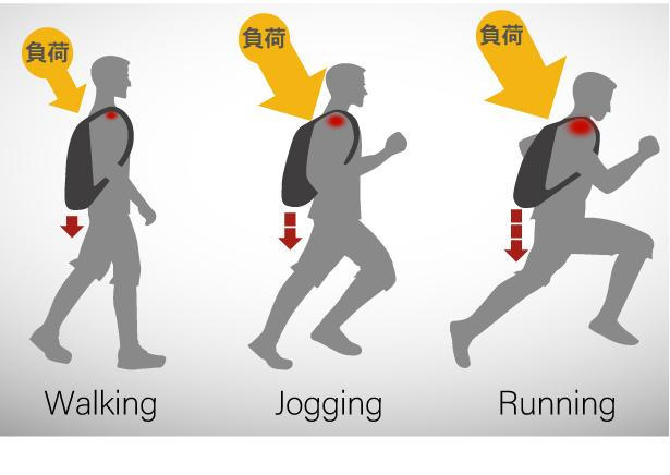 ※重さ3kg以下のリュックの場合、効果を感じる事が少ない場合がございます。荷物の重さが重いほど効果を感じる事ができます。