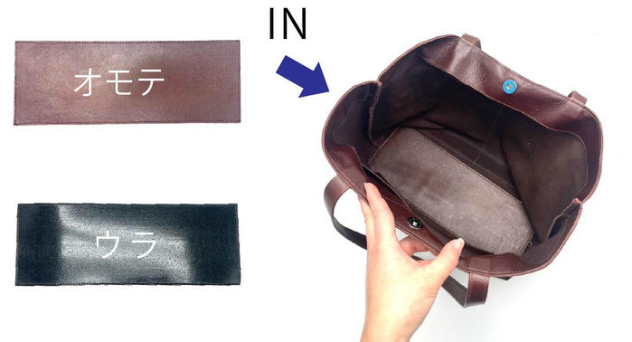 - バッグの中に裏地を付けない場合、革の裏面が剝き出しになります。