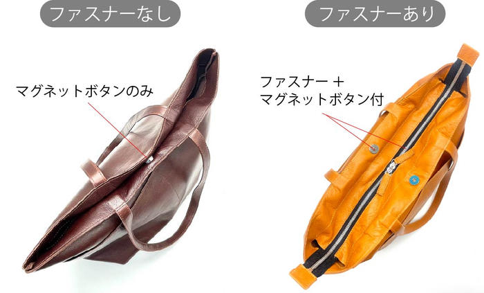 - そしてファスナーが欲しいという方のために、ファスナー付モデルもご準備しました。電車やバスなど、移動の多い方にはオススメです。(マグネットも付きます)
