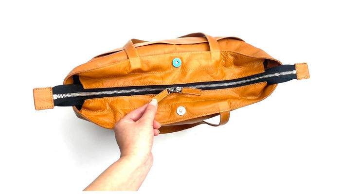また柔らかい革なので、底板を外すとコンパクトにまとめることができ、折り畳みも可能です。旅行やサブバッグとしても◎。 -