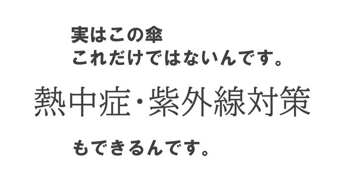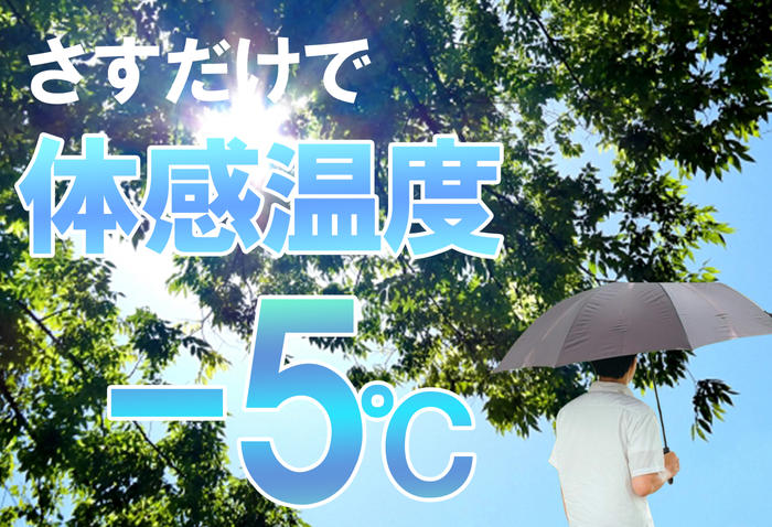 - 灼熱の太陽の下でも、ひんやり快適。遮光+UVカットで熱を効率よく逃がすことで、通常の日傘と比べて「体感温度 -5℃」を実現しました。