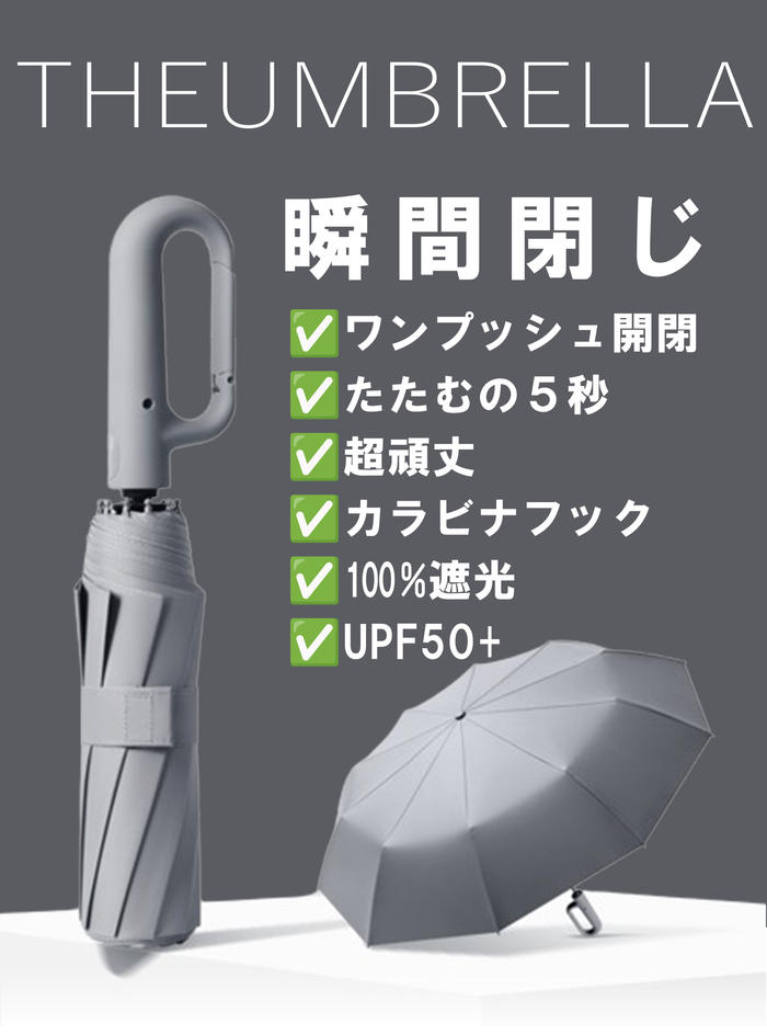 - A. フックが付いており、かばんに取り付けて持ち運びが便利です。また、日傘としても使用可能で、強い耐久性を持つデザインが特徴です。重さは491gで、軽すぎず適度な安定感があります。