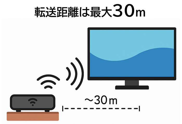 - 内蔵された高性能チップが、最大30メートルの安定したワイヤレス転送を実現。従来のように長いHDMIケーブルを引き回す必要はありません。