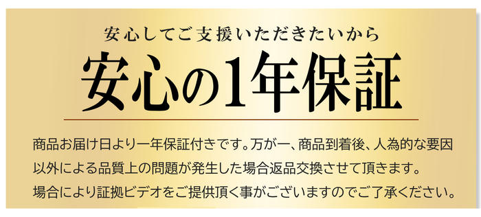- A:万が一、初期不良や製造上の欠陥が見受けられた場合は、交換または返品・返金の対応をさせていただきます。