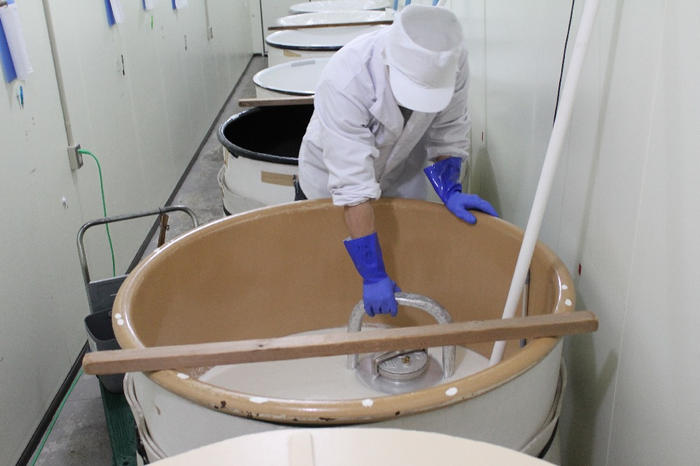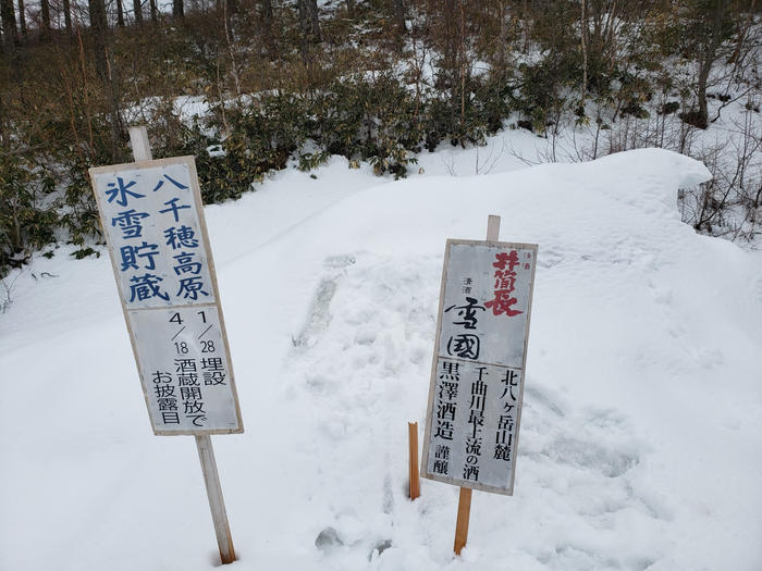 雪の中は、平均温度マイナス2度。湿潤で空気流動のない状態です。この中で、新酒はじっくりと熟成し硬さが取れ、まろやかで独特の味に仕上がります。生のまま貯蔵することで、ゆっくりと熟成が進み、新酒の持つフレッシュさはそのままに、まろやかで独特な味わいに仕上がります。
