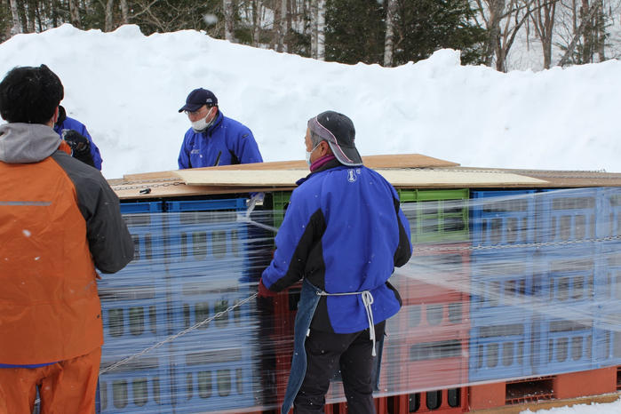 雪室へ貯蔵する風景と、掘り起こした雪國