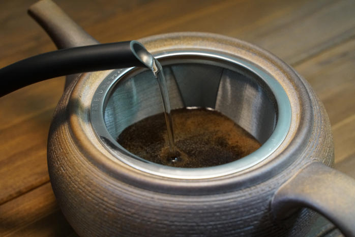 - 淹れ方はいたって簡単。カゴ網フィルターに中~粗挽きの粉を入れ、お湯を少し回しかけて1分ほど蒸らします。後は飲む分のお湯を入れたら2~3分待ってからカップに注げば、香り豊かで旨味のあるコーヒーが出来上がります。急須本体やフィルターの洗浄も容易で、カゴ網フィルターは繰り返し使えるため、紙フィルターのように買い置きする必要もなくエコで経済的です。