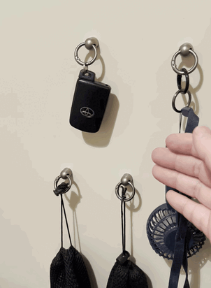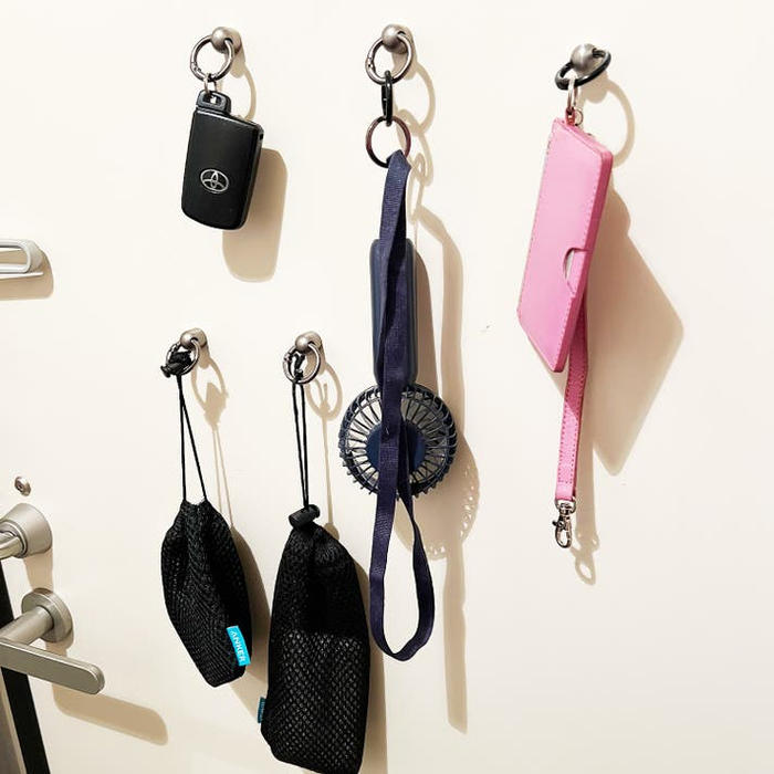 玄関で鍵や小物を探す時間をゼロに。マグネットで一瞬着脱、忘れ物ゼロへ 本体は美しさと高強度を兼ね備えた素材を継続、耐久性アップのためマグネットを本体に入れました。 より強い磁力!という声からワイドサイズを企画、また複数持ちに便利な磁極が変更できる構造に進化