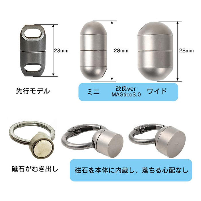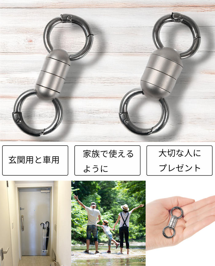 軽量・強靭・強力磁石が特徴で従来のキーホルダーよりも便利に!