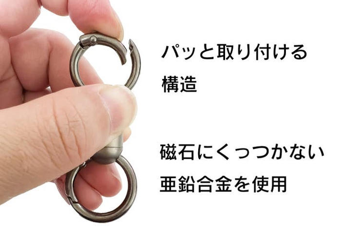 チタン製マグネットコネクターで、鍵も小物も一瞬着脱!