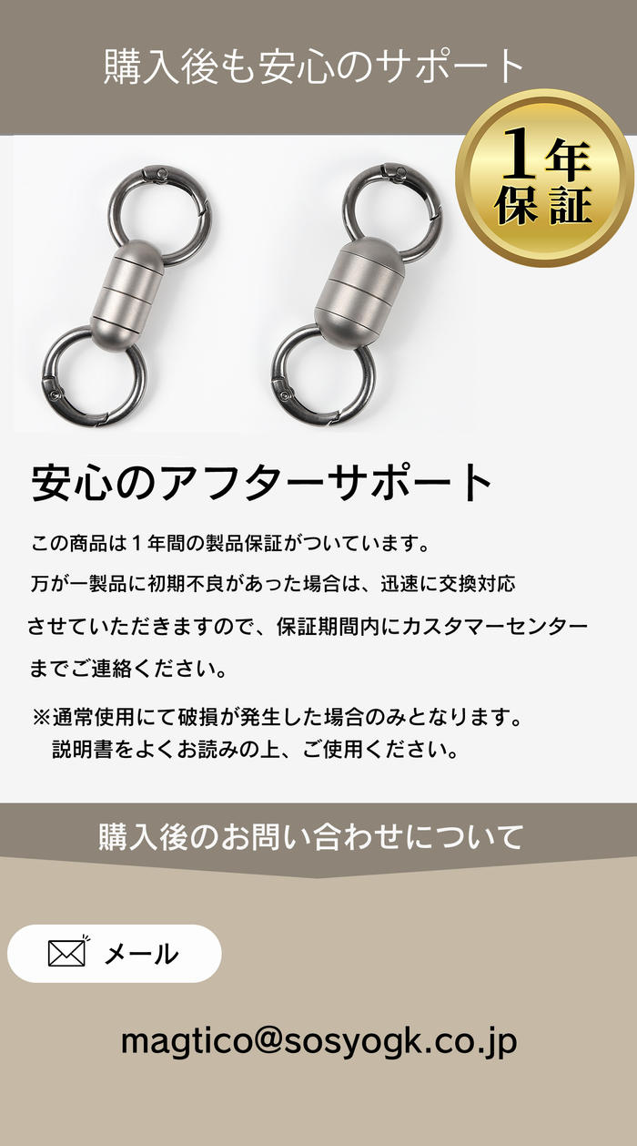 • 【セット内容】 ・マグネットコネクター Magtico3.0ミニ 1個 ・リング2個 【サイズカラー】 ・ポリッシュチタンミニ リングの色は素材に合わせた色になります。 ・一般販売予定価格:3,980円(税込)  割引率は税込予定販売価格(3,980円)に対するものです。 ・価格は消費税込・送料込です。