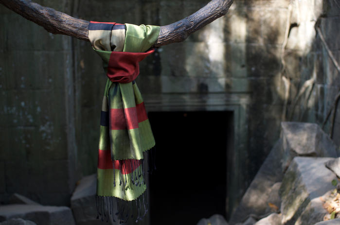 - カンボジアの伝統的なデザインに新たな息吹を吹き込むとともに、貧しい農村地帯の女性たちに読み書きと絹織物の技術を教え、自立を支援することをめざして誕生したブランド。紡ぎ、染め、織り、すべて手作業。ひとつの織物が完成するまで90日かかるものもあります。