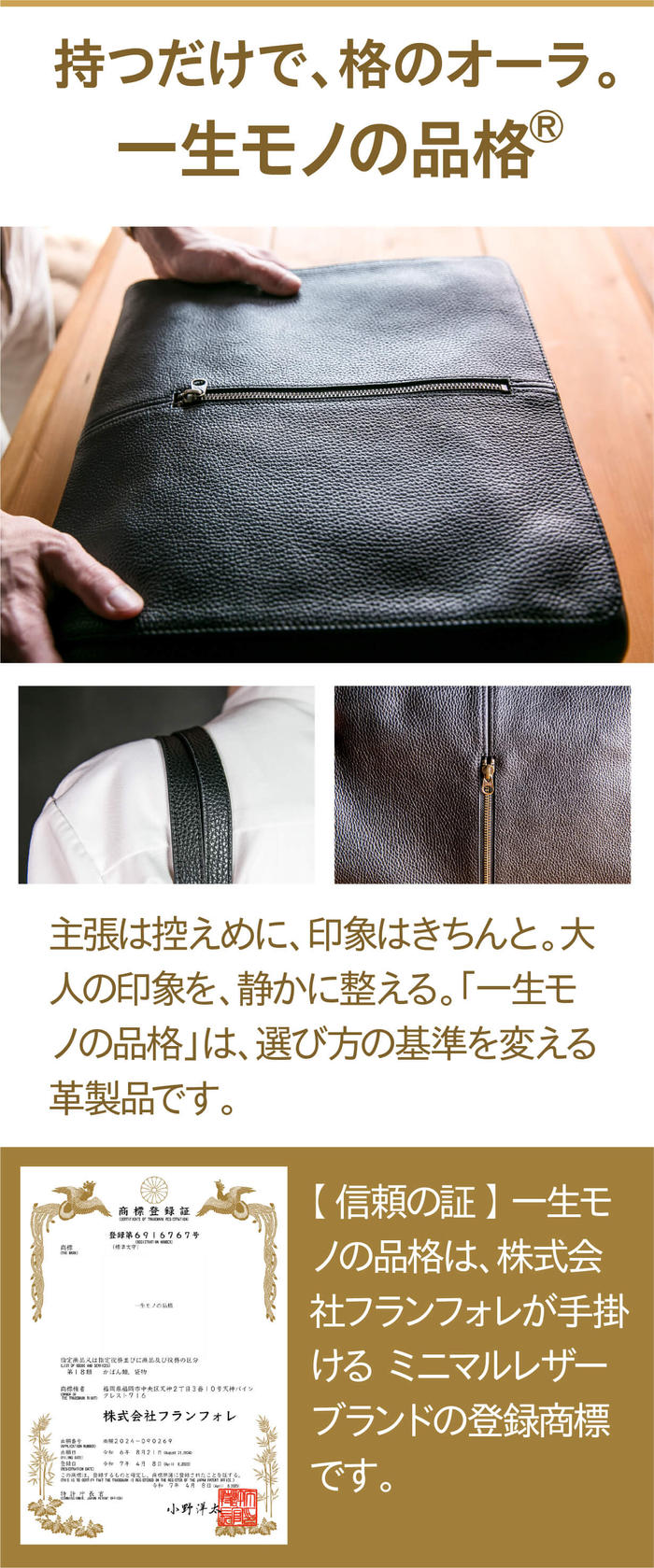 販売事業者名株式会社フランフォレ販売事業者所在地〒810-0001 福岡県 福岡市中央区 天神2丁目 3番10号 天神パインクレスト716代表者または運営統括責任者石原 幸太朗代表者または運営統括責任者(フリガナ)イシハラ コウタロウ連絡先/ホームページhttps://www.minimalleather.jp/連絡先/電子メールinfo@minimalleather.jp連絡先/TEL092-577-0155販売価格帯※各プロジェクトページの「リワード代金」をご覧ください。価格は税込です。商品等の引き渡し時期(日数)・発送方法商品の引渡し時期またはサービスの提供時期は、各プロジェクトページの記載をご確認ください。代金の支払時期および方法《決済手段》クレジットカードコンビニ決済《支払時期》本プロジェクトは実行確約型です。商品購入時に決済が行われます。商品代金以外に必要な費用 /送料、消費税等送料無料 (商品代金に含む)返品の取扱条件/返品期限、返品時の送料負担または解約や退会条件《返品の取扱い条件》輸送による商品の破損および発送ミスがあった場合のみ返品可。商品到着後14日以内に起案者までご連絡いただいた後、起案者から連絡のある返送先へご返送下さい。上記返品条件に該当しないお客様都合のキャンセルはお受けしておりません。不良品の取扱条件商品受取時に必ず商品の確認をお願いいたします。商品には万全を期しておりますが、万が一下記のような場合にはお問い合わせフォームにてお問い合わせ下さい。・申し込まれた商品と異なる商品が届いた場合・商品が汚れている、または破損している場合上記理由による不良品は、商品到着後14日以内に起案者までご連絡いただいた後、起案者から対応方法をお客様宛にご連絡致します。