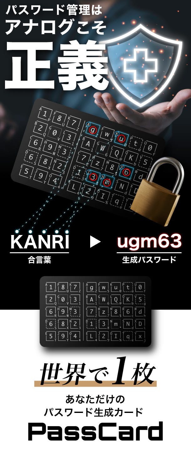 1枚のPassCardから無限のパスワードの組み合わせを生成できます。
