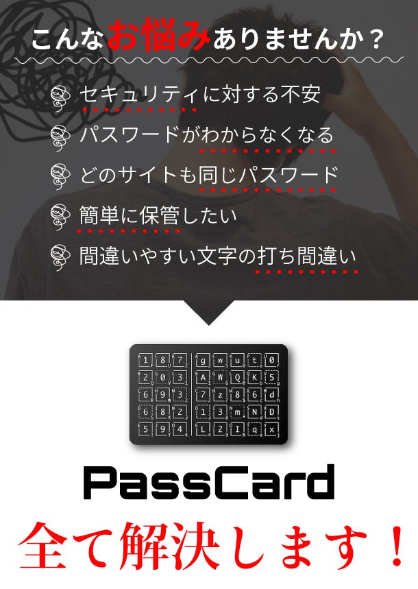 誰かがあなたのPassCardを拾ったとしても、パスワードを知ることはできません。
