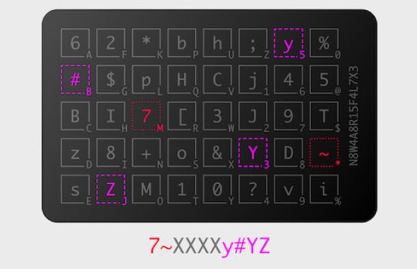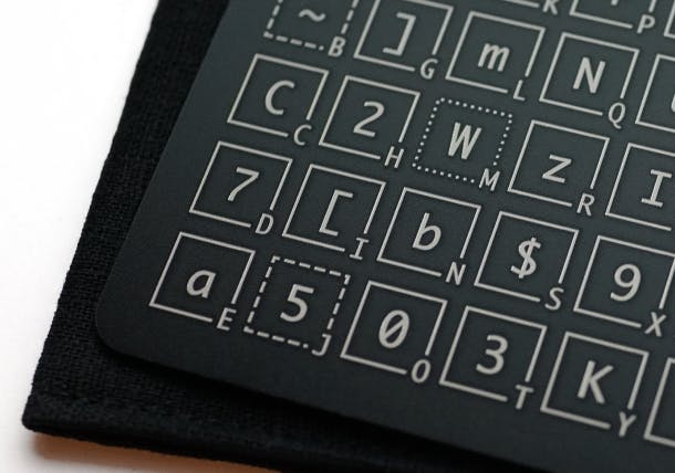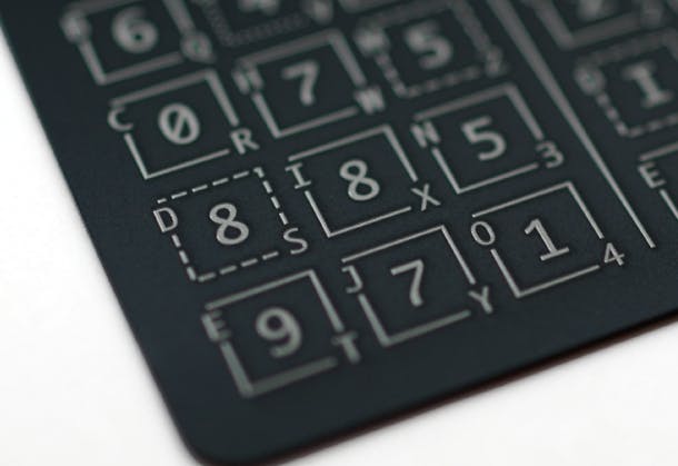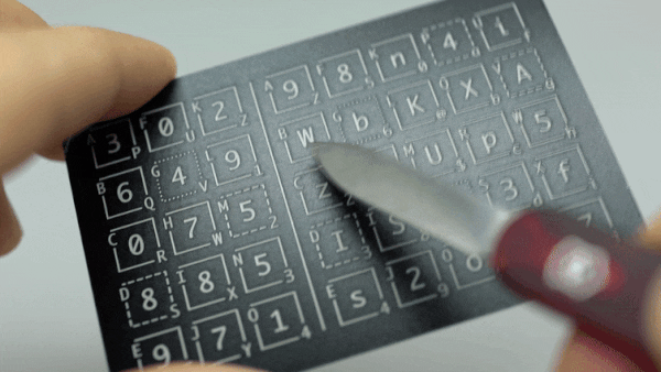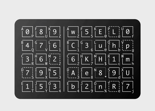 A:ユーザーは、この金属カードのグラフィックから簡単に4通りの方法で強力なパスワードを生成できます。PassCardの推奨される使用方法については、上記で詳しく記しています。また、カードには電子部品が含まれていないため、ハッキングされることはありません。
