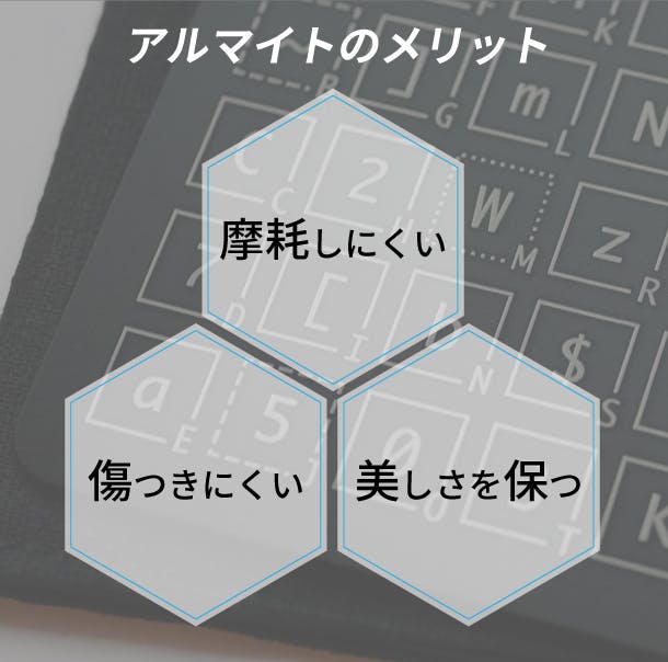 彫刻は厚くて丈夫な黒色陽極酸化アルミニウム層の表面を除去することにより、印刷と比べて色あせたり磨耗したりすることはありません。