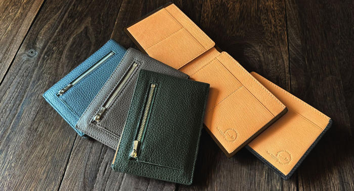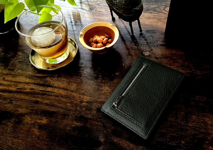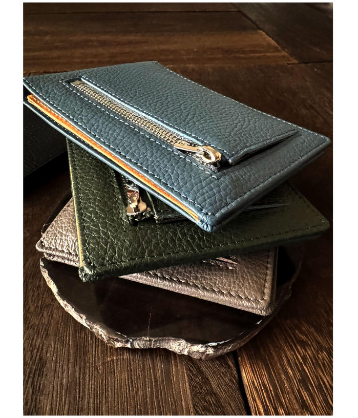 - 選定素材は、表側はイタリア製丸シボ型押し、内側は植物タンニン鞣し仕上げの国産ゴートレザー(山羊革)。表側のイタリア革は手になじむしなやかな質感とキズなどが目立ちにくく購入時のシックな色合いを長くお楽しみいただける仕上げ方になっております。