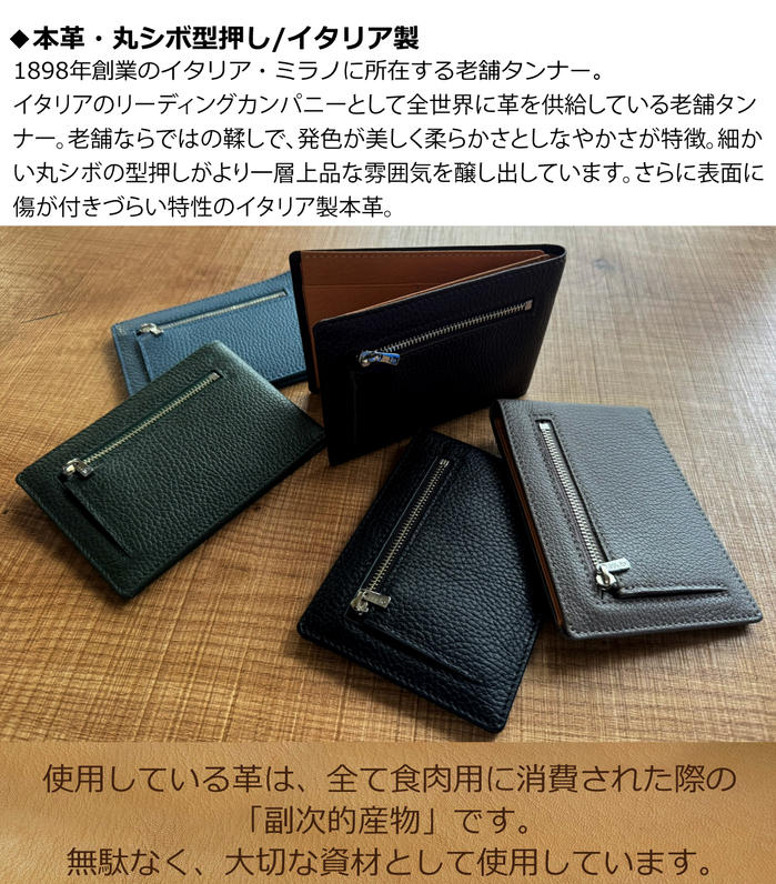 素材:<表側>牛革・丸シボ型押し【イタリア製】