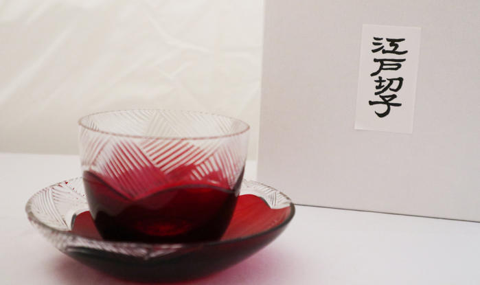 Wonder500認定商品:江戸切子ぐい呑み逆さ富士冷酒セット 桐箱入り